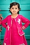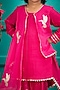 Featuring a rani pink kurta for girls in chanderi base with an attached dupatta. It is paired with palazzo pants. Accentuate it with cute hair clips, comfy sandals and a tiny sling bag for a festive occasion or wedding ceremony.