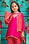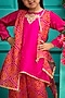 Featuring a rani pink kurta for girls in silk and bandhej kota fabric base, including an attached dupatta. It is paired with palazzo pants. Accentuate it with cute hair clips, comfy sandals and a tiny sling bag for a festive occasion or wedding ceremony.