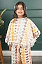 Featuring a white poncho for girls in linen cotton base with threadwork. It is paired with pants. Style it with cute hair accessories and sandals for a festive occasion or birthday party.