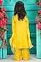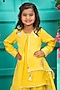 Featuring a yellow kurta for girls in chanderi base with an attached dupatta. It is paired with palazzo pants. Accentuate it with cute hair clips, comfy sandals and a tiny sling bag for a festive occasion or wedding ceremony.
