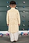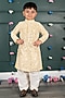 Featuring a yellow kurta for boys in georgette cotton silk base with embroidery. It is paired with white cream pants. Style it with a watch and pair of mojris for a festive occasion or sangeet ceremony.