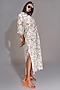 Featuring a beige maxi shirt dress in natural cotton base with print. It is paired with a belt. Style this designer dress with statement earrings and heels for vacations, casual outings, or even everyday wear.