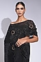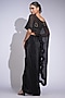 Featuring a black pre-stitched dhoti skirt in crepe base. It is paired with an organza drop-shoulder sheer cape having upcycled sequins hand embroidery and a silk blouse. Accentuate it with statement earrings and block heels for cocktail soirees.
