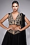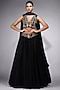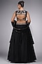 Featuring a black lehenga in silk base with beaded tassel work. It is paired with a matching blouse having zari and dori embroidery and a georgette dupatta having upcycled sequins work.