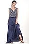 Featuring a blue maxi dress in modal base with telephone motif embroidery.