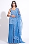 Featuring a cobalt blue kurta in silk base with embroidery. It is paired with a crepe sharara and an organza dupatta. Accentuate it with polki earrings and heel for festive gatherings or pooja ceremony.