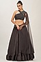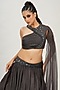 Featuring a lead grey lehenga in silk base with hand embroidery and a star net drape. It is paired with a matching bustier.