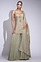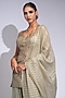 Featuring a light olive green kurta in silk base with hand block print, sequins and cutdana hand embroidery. It is paired with crepe sharara pants and an organza dupatta. Accentuate it with statement earrings and block heels for weddings ceremonies.