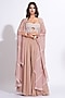 Featuring a nude cape in silk base with embroidery. It is paired with a corset and a georgette sharara. Accentuate it with zircon jewellery and block heels for festive celebrations, cocktail or sangeet ceremony.