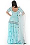 Featuring a sky blue kurta in silk base with thread and mirrors work embroidery. It is paired with matching modal satin sharara pants and an organza dupatta.
