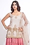 Featuring a taupe kurta in silk base with embroidery. It is paired with a silk skirt and an organza dupatta. Accentuate it with polki earrings and heel for festive gatherings or pooja ceremony.