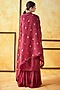 Featuring a maroon kurta in pure chanderi base with sequins and zari embroidery. It is paired with matching sharara pants and a dupatta.
