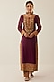 Featuring a purple kurta in chanderi silk base with aari work. It is paired with matching pants and a dupatta.
