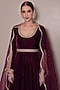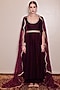 Featuring a purple anarkali in velvet base. It is paired with matching pants and a dupatta.