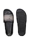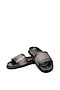 Featuring a pair of black and grey slippers in leather base. It has a leather underlining, a flexible rubber outsole and 1 inch heels.