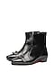 Featuring a pair of black boots in leather base with a pointed toe, zip-up design and silver studded buckle. It has a leather lining and 1-inch heels. Perfect for weddings, parties, and festive glam looks.
