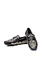 Use a shoe horn and keep shoes in shape with paper or a shaper. Store in a dust bag, in a cool, dry place. For leather, wipe with a damp cloth and avoid chemicals.