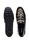 Featuring a pair of black loafers in leather base with floral embroidery. It has a leather lining and 1-inch heels. Perfect for weddings, parties, and festive glam looks.