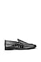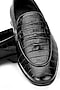 Featuring a pair of black slip-on shoes in croco leather base. It has a leather underlining, leather cushioned foot bed and 1-inch heels.