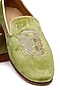 Green Velvet Embroidered Slip-On Shoes