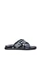 Featuring a pair of navy blue slip-ons in denim and leather base. It has a leather lining and 1-inch heels. Perfect for weddings, parties, and festive glam looks.