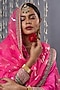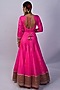 Featuring a pink anarkali in pure silk base with zardosi border detail. It is paired with a banarasi silk organza dupatta. Accentuate it with statement jewellery and block heels for a wedding ceremony.