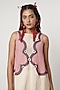 Shwetanga features a red scalloped gamcha scalloped tunic in a cotton and linen fabric with shell buttons and beads detail. It is paired with bell-bottom pants. Style it with bold earrings, flats and a structured bag for a contemporary look, suitable for brunch dates or casual occasions.