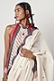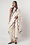 Shwetanga features a red top in a cotton fabric with floral patchwork and an arch hemline. It is paired with a mesh dhoti having a scalloped bindi pallu. Style it with statement earrings, strappy flats and a sling bag for a vibrant look, perfect for festive day events, mehendi ceremonies or summer celebrations.