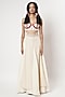 Shwetanga features an ivory tunic in a cotton mesh fabric with floral embroidery. It is paired with a beaded corset and sharara pants. Style it with bold earrings, flats and a structured bag for a contemporary look, suitable for brunch dates or casual occasions.