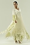 Featuring an ivory and olive green kaftan in organza and crepe base with bead work. It is paired with straight pants having color blocking and a cotton inner. Accentuate it with statement jewellery, a clutch and block heels for festive ceremonies.