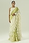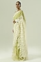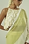 Featuring an ivory and olive green saree in organza base with color blocking. It is paired with a bead work blouse. Accentuate it with statement jewellery, a clutch and block heels for pre-wedding or engagement ceremonies.