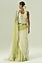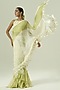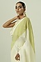 Ivory & Olive Green Organza Color Blocked Saree Set
