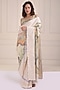 Featuring an ivory saree in organic cotton base with scallop and print. It is paired with a draped blouse. Accentuate with statement earrings and heels for weddings or engagement ceremonies.