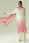 Featuring an ivory and pink ombre kurta in satin georgette and organza base with bead work. It is paired with pants and a dupatta. Accentuate it with statement jewellery, a clutch and block heels for pre-wedding or engagement ceremonies.