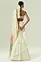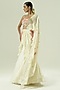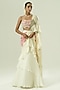 Featuring an ivory and pink draped ruffled saree in satin georgette and organza base with patchwork. It is paired with a beaded blouse. Accentuate it with statement jewellery, a clutch and block heels for pre-wedding or engagement ceremonies.