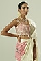 Ivory & Pink Satin Georgette Patchwork Draped Saree Set