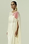 Featuring an ivory and pink kaftan in satin georgette and crepe base with patchwork. It is paired with a tube and sharara pants. Accentuate it with statement jewellery, a clutch and block heels for pre-wedding or engagement ceremonies.