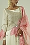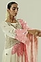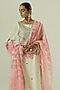Featuring an ivory and pink kurta in satin georgette and organza base with patchwork. It is paired with pants and a tie-dyed dupatta. Accentuate it with statement jewellery, a clutch and block heels for pre-wedding or engagement ceremonies.