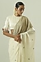 Featuring an ivory and pink saree in satin georgette and net base with patchwork. It is paired with a blouse. Accentuate it with statement jewellery, a clutch and block heels for pre-wedding or engagement ceremonies.