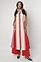 Shwetanga features an ivory and red panelled kurta in a cotton fabric with embroidered neckline, gathered panel and stitch detail. It is paired with pleated pants. Accentuate it with minimal jewellery, comfortable flats and a tote bag for an effortless look, ideal for brunch outings, daytime gatherings or festive occasions