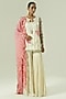 Featuring an ivory and pink kurta in satin georgette and organza base with patchwork and net sleeves. It is paired with ivory sharara pants and a pink dupatta. Accentuate it with statement jewellery, a clutch and block heels for pre-wedding or engagement ceremonies.