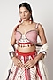 Shwetanga features a multicolored lehenga in a cotton fabric with cording and patchwork. It is paired with a bustier having beaded droplet detail and a scalloped dupatta. Style it with statement earrings, strappy flats and a sling bag for a vibrant look, perfect for festive day events, mehendi ceremonies or summer celebrations.