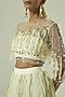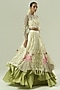 Featuring a multi-colored layered lehenga in satin georgette, net and crepe base with sequins detail. It is paired with a blouse and a bustier. Accentuate it with statement jewellery, a clutch and block heels for pre-wedding or engagement ceremonies.