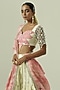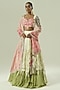 Featuring a multi-colored layered lehenga in satin georgette, crepe, net and organza base with patchwork. It is paired with a blouse and a tie-dyed dupatta. Accentuate it with statement jewellery, a clutch and block heels for pre-wedding or engagement ceremonies.