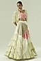 Featuring a multi-colored ruffled lehenga in satin georgette and organza base with patchwork. It is paired with a blouse and a leaflet cape. Accentuate it with statement jewellery, a clutch and block heels for pre-wedding or engagement ceremonies.