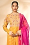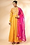 Featuring an apricot yellow anarkali in banarasi brocade base. It is paired with pants and an organza dupatta. Accentuate it with statement jewellery and heels for wedding ceremony or festive occasions.