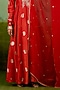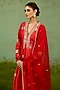 Featuring a burn orange anarkali in silk brocade base with zardosi hand embroidery. It is paired with trousers and an organza dupatta. Style it with statement earrings, soft curls and block heels, perfect for festive gatherings or sangeet ceremony.