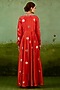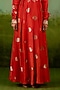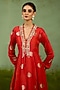 Featuring a burn orange anarkali in silk brocade base with zardosi hand embroidery. It is paired with trousers. Style it with statement earrings, soft curls and block heels, perfect for festive gatherings or sangeet ceremony.