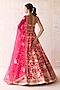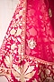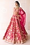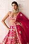 Featuring a carmine rose pink lehenga in raw silk base with applique and dori embroidery. It is paired with a blouse, an organza dupatta and a belt. Accentuate the designer lehenga with polki jewellery, block heels and a potli bag for a wedding, sangeet or engagement ceremony.