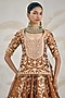 Featuring a coffee brown-burnt orange lehenga in silk tissue organza base with gota embroidery. It is paired with a short kurta and a dupatta. Accentuate it with gold or polki jewellery and heels for a reception, sangeet, wedding or engagement ceremony.